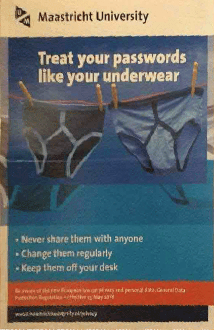 Oggi ho visto un simpatico ma efficace manifesto della Maastricht University e per ricordare le buone regole sulla gestione delle password te la condivido: